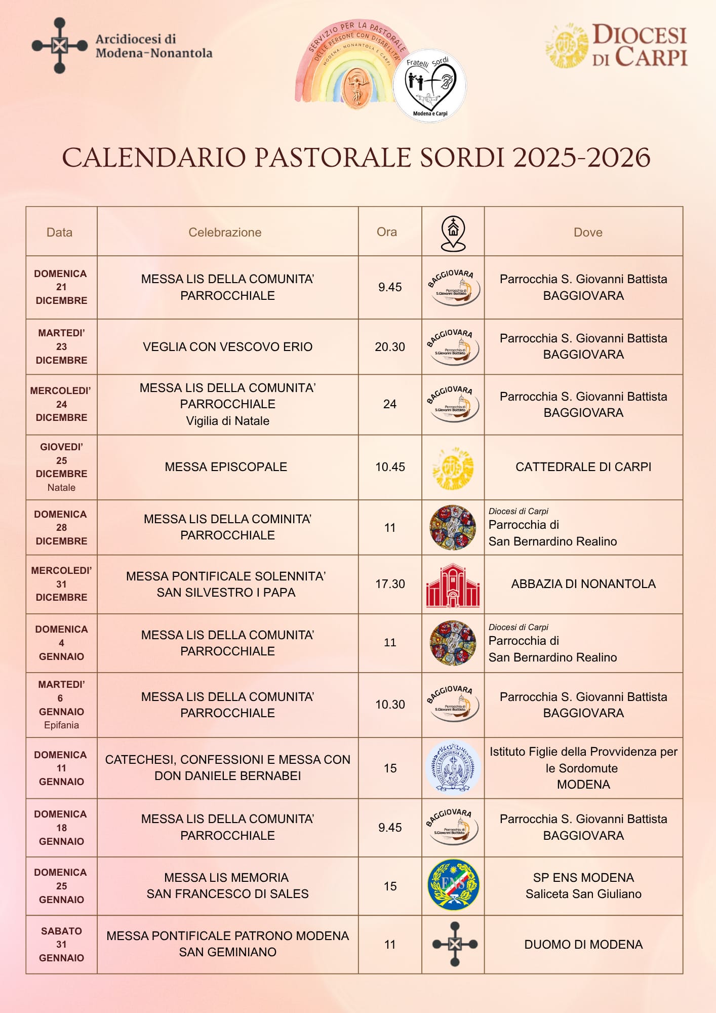 L'iniziativa, frutto del coordinamento delle Diocesi di Modena e Carpi, fa parte del Calendario Pastorale Sordi.